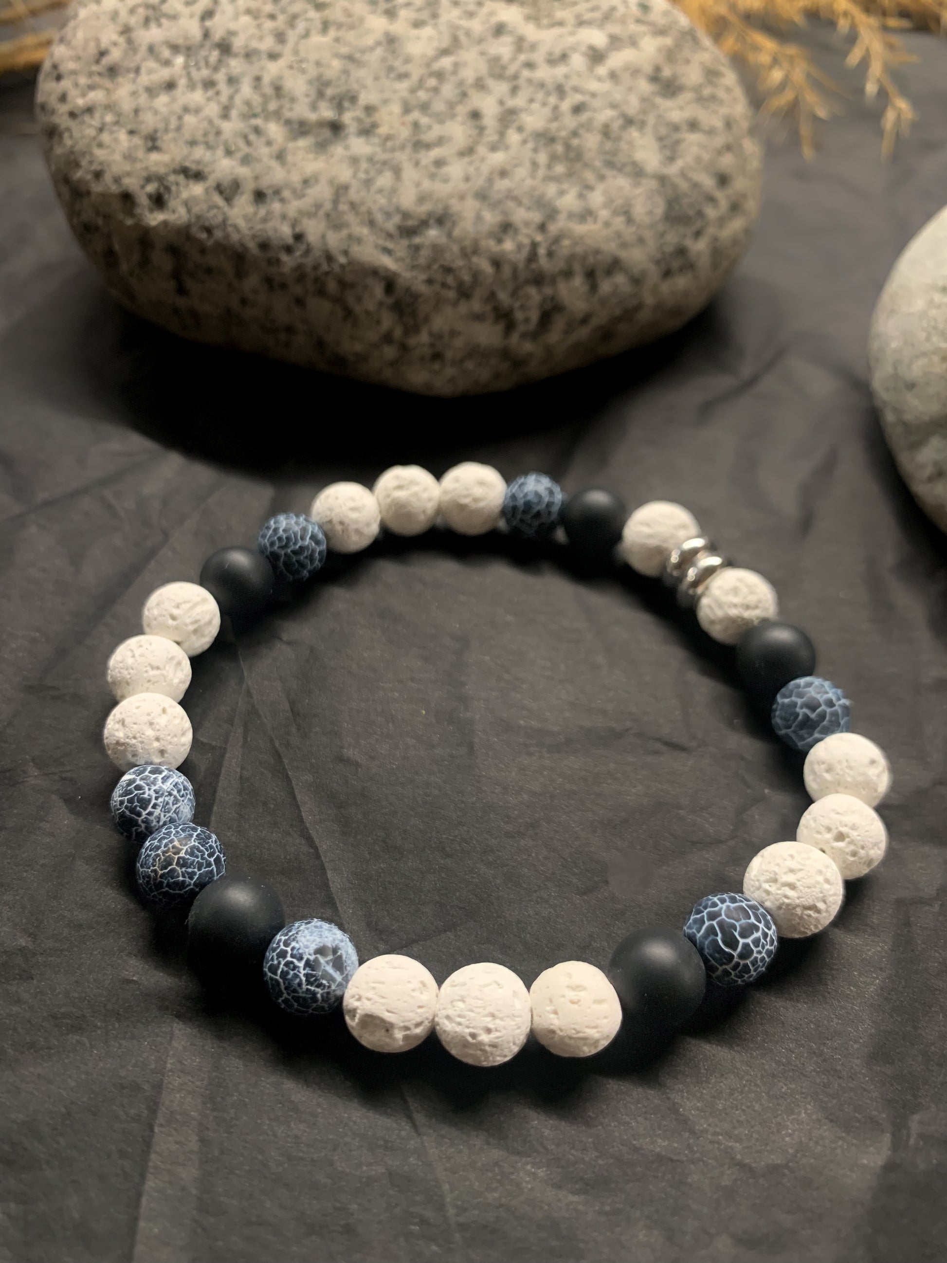 The jewelry uses genuine natural stones; Lava stone, & Agate.