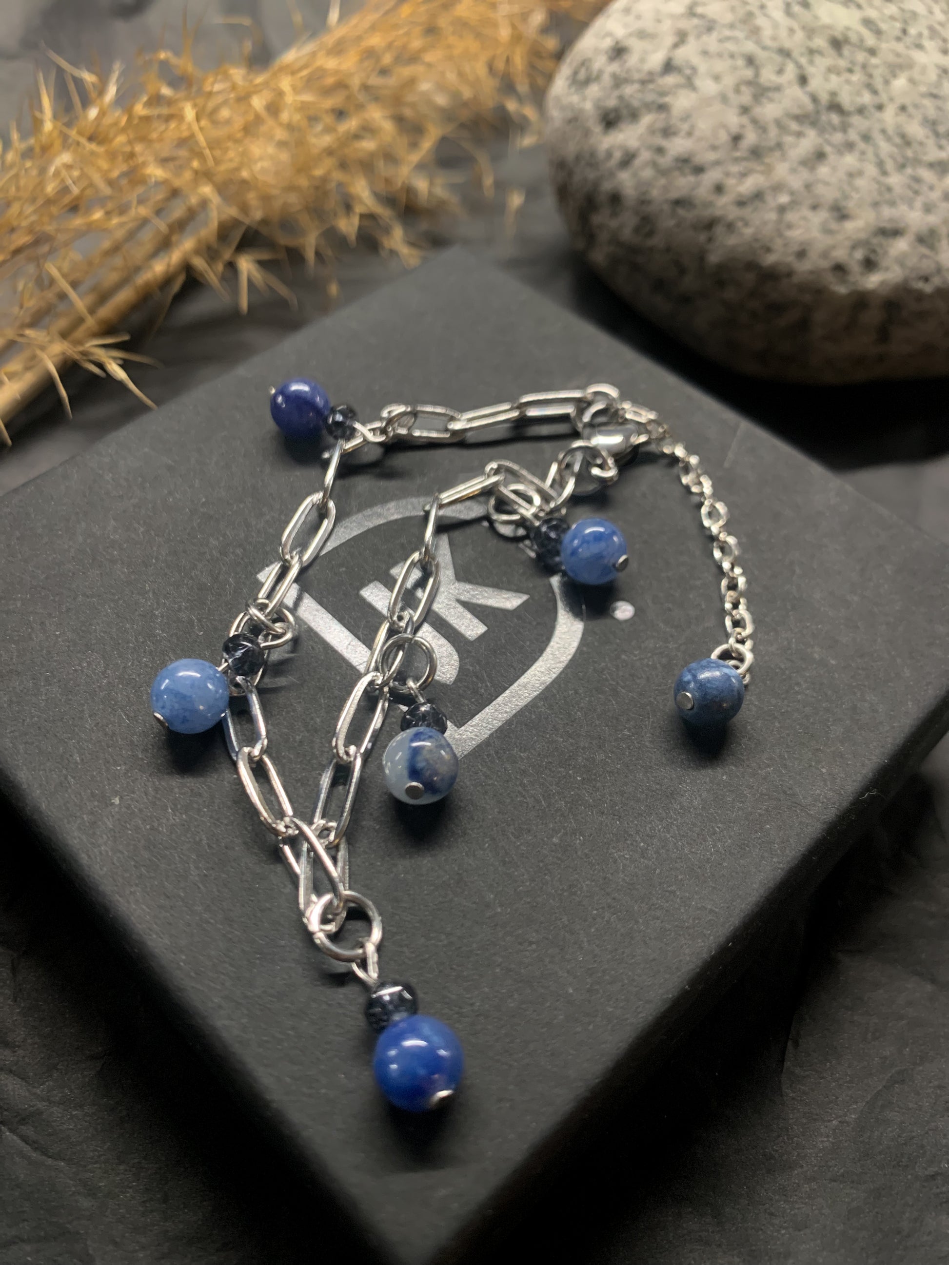 The jewelry uses genuine natural gemstones; Aventurine. The metal parts are made of high-quality, hypoallergenic surgical steel.