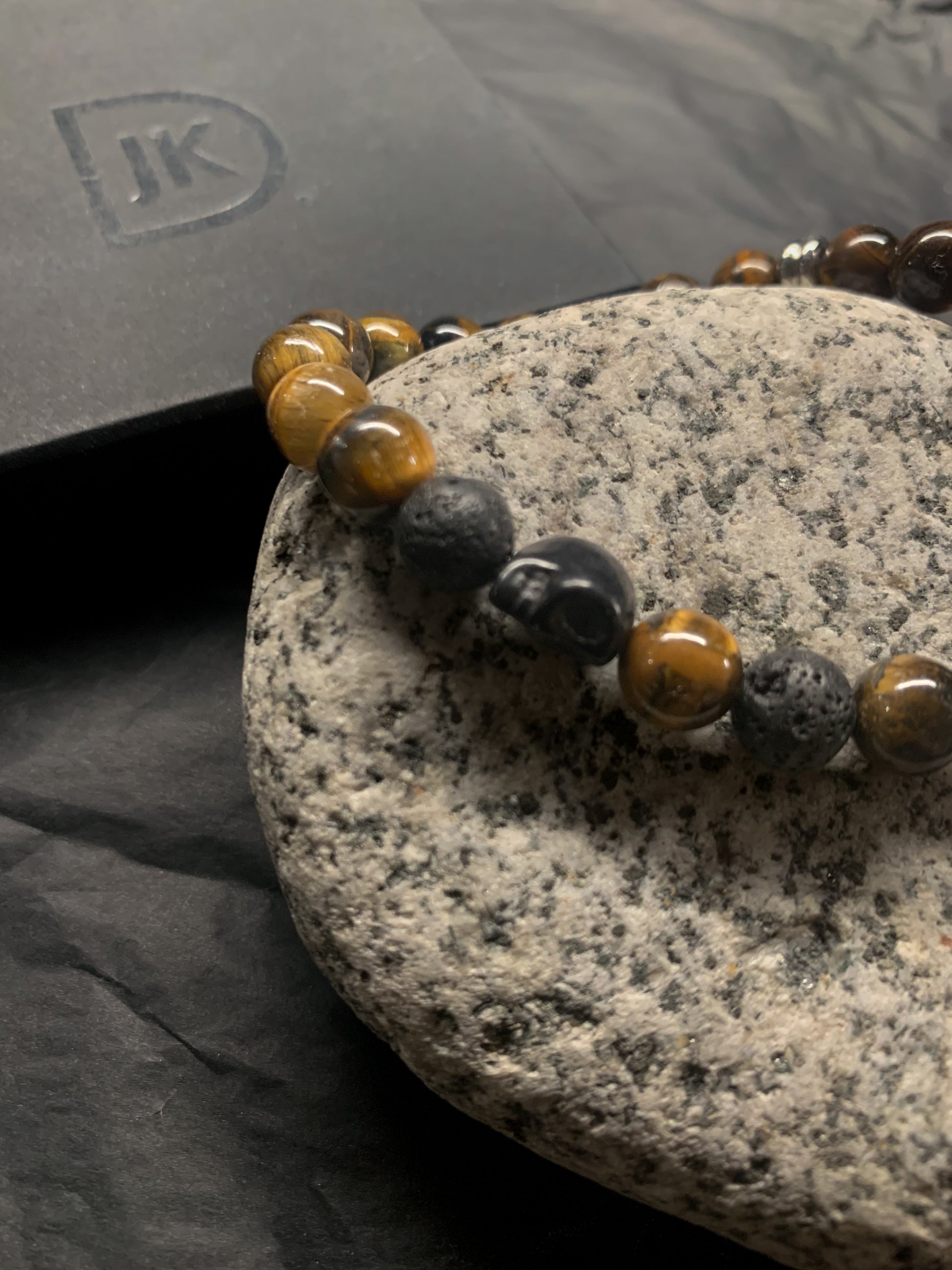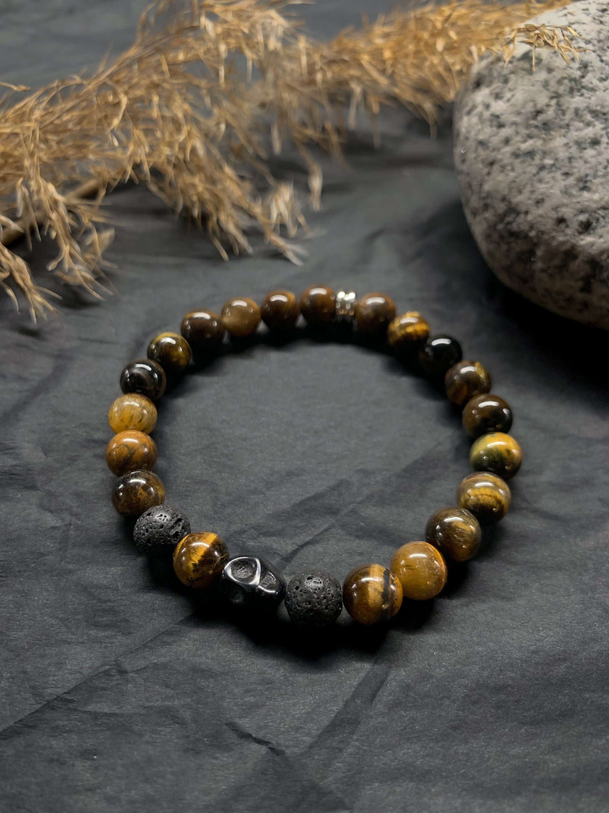 Gubbe Tiikerinsilmä Laavakivi Magnesiitti -rannekoru