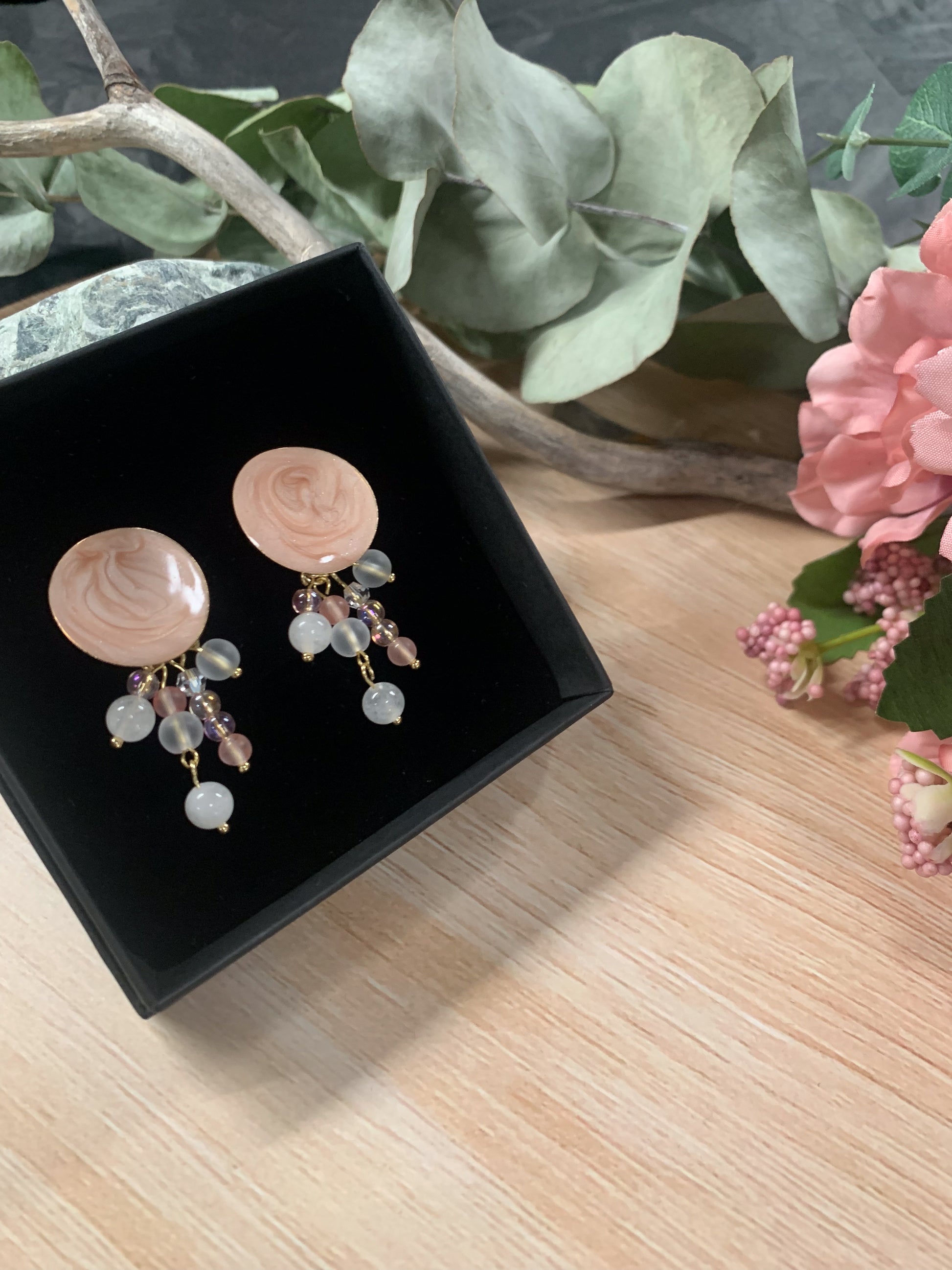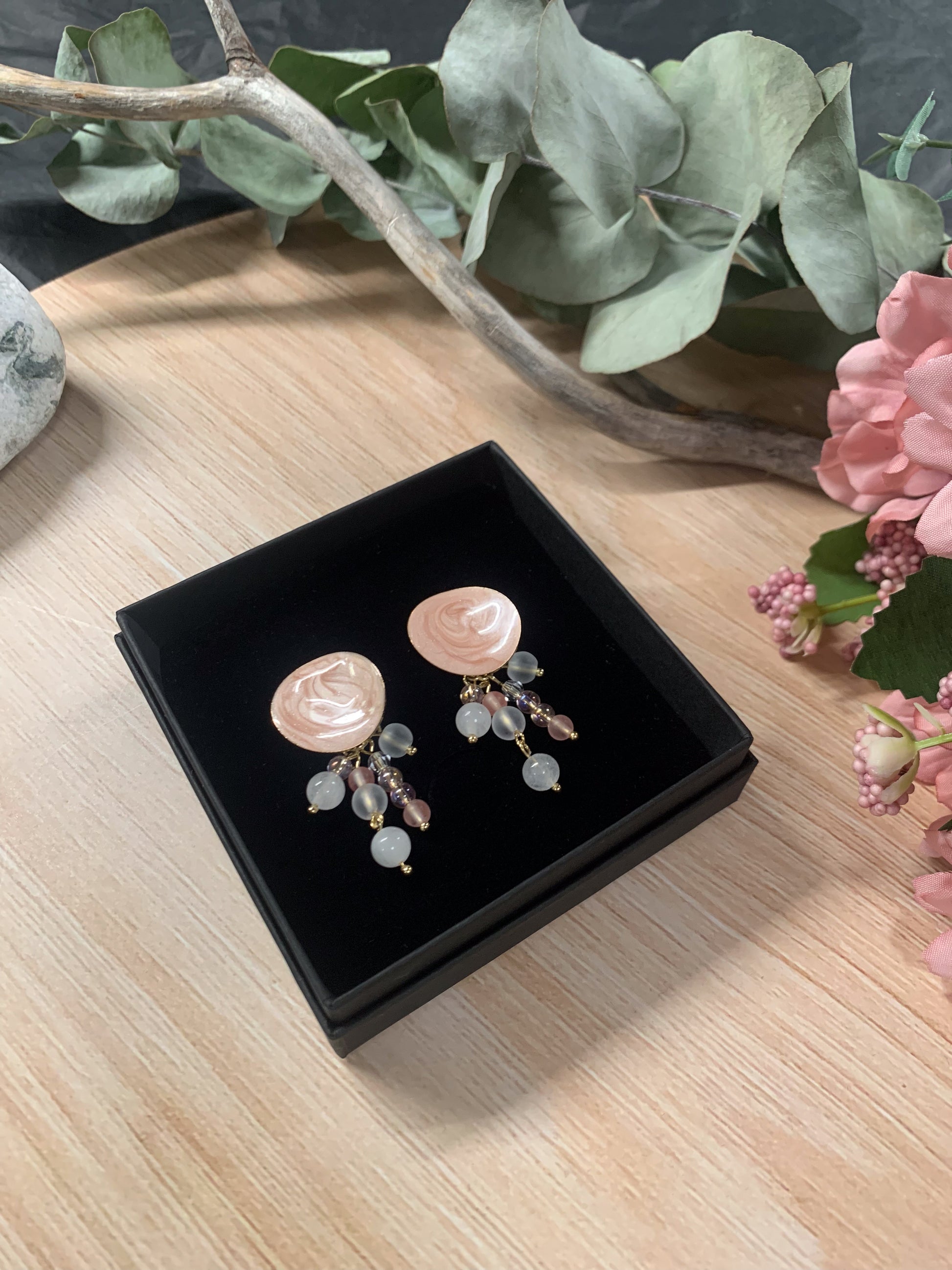 Koralli-korvakorut (hento vaaleanpunainen-valkoinen)